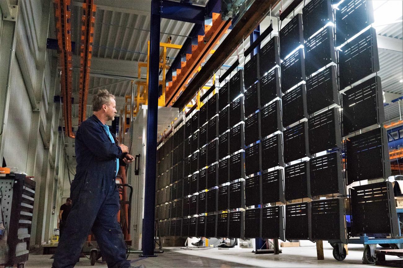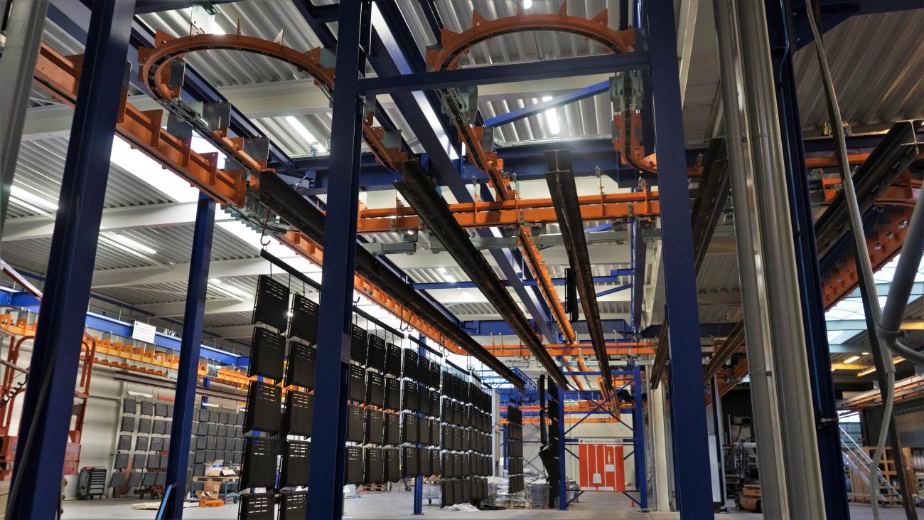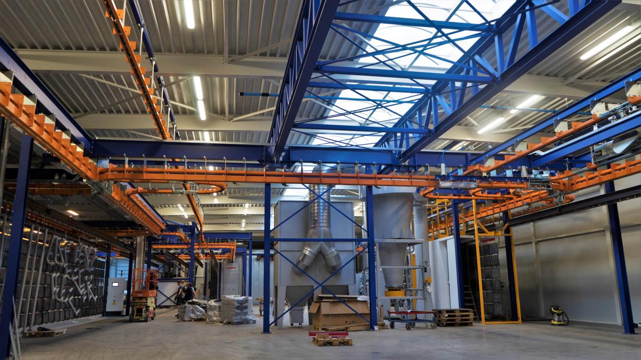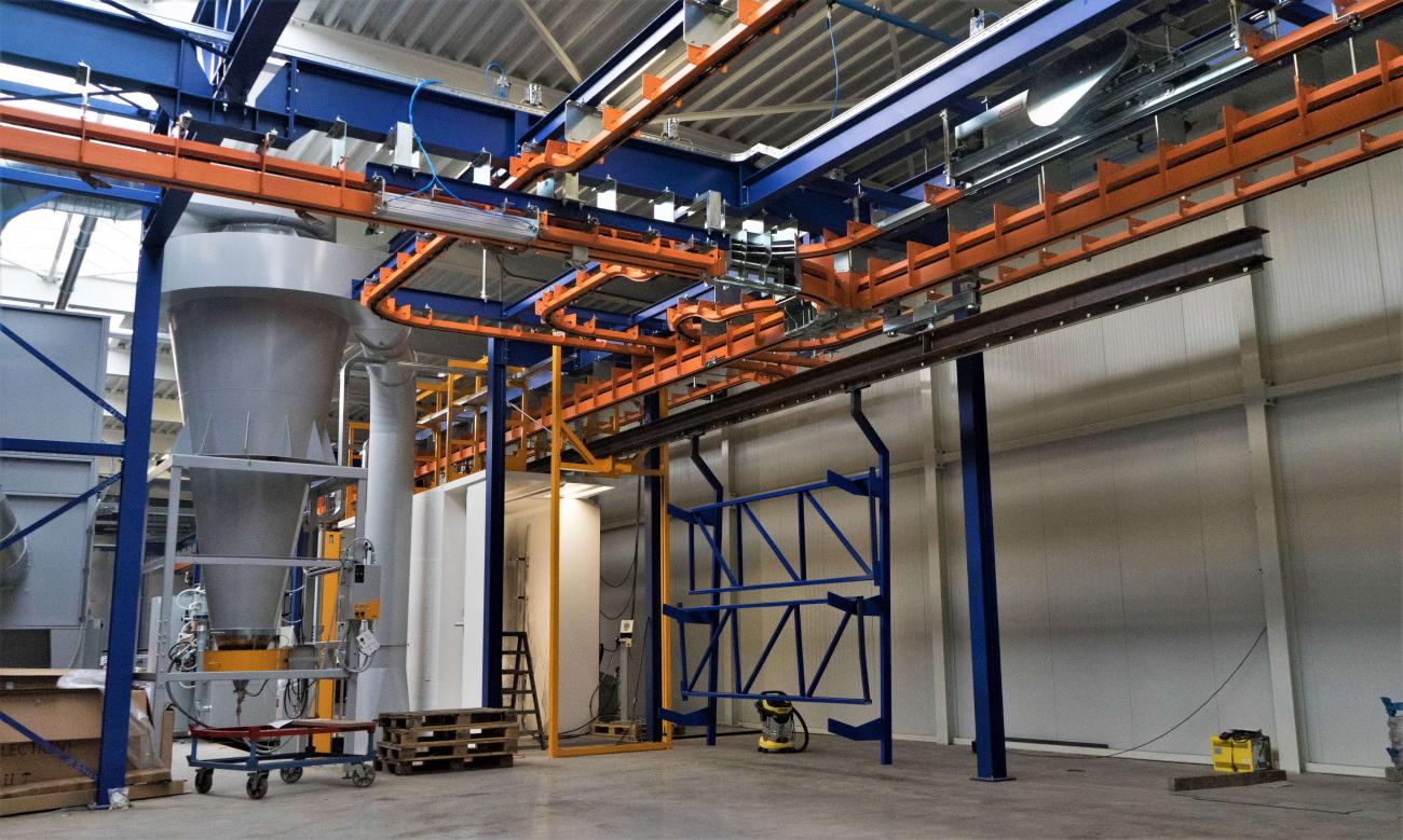 The T5 is our biggest Power and Free overhead system and can handle loads of up to 5000 kgs*. This system at Geuze Metaalconserveren BV has been custom built to suit the requirements of their powder coating processes, with the track being able to carry the product through powder spray cabins and heating ovens.