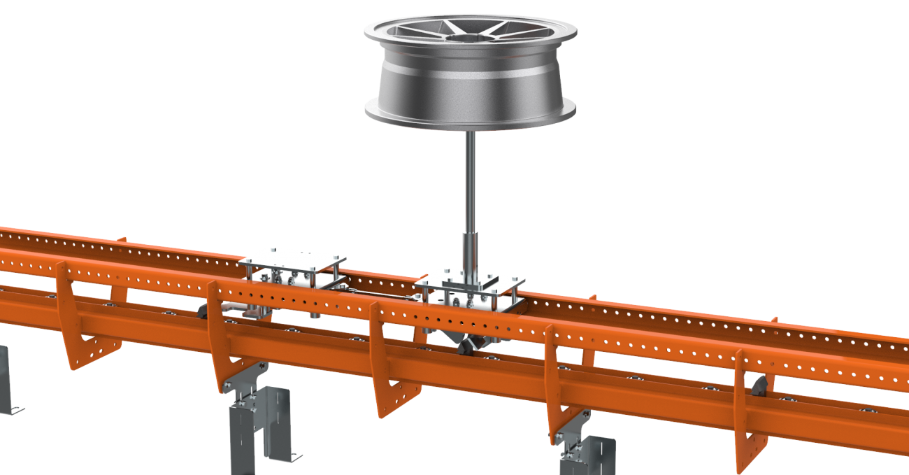 Il sistema di trasporto F2 Wide Track Power & Free Sistema di trasporto a pavimento è stato appositamente progettato per il trasporto stabile di prodotti quali parti automobilistiche in plastica e ruote in alluminio. Questa è la nostra più recente offerta di prodotti per sistemi di trasporto a pavimento, appositamente progettati per l'industria del trattamento delle superfici.